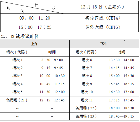 根据教育部考试中心的安排,2021年下半年全国大学英语四、六级考试笔试和口试将分别于2021年12月18日和11月20至21日进行,本次采用全国集中网上报名方式,报考语种有:英语四级、六级;考试时间及报名程序如下: