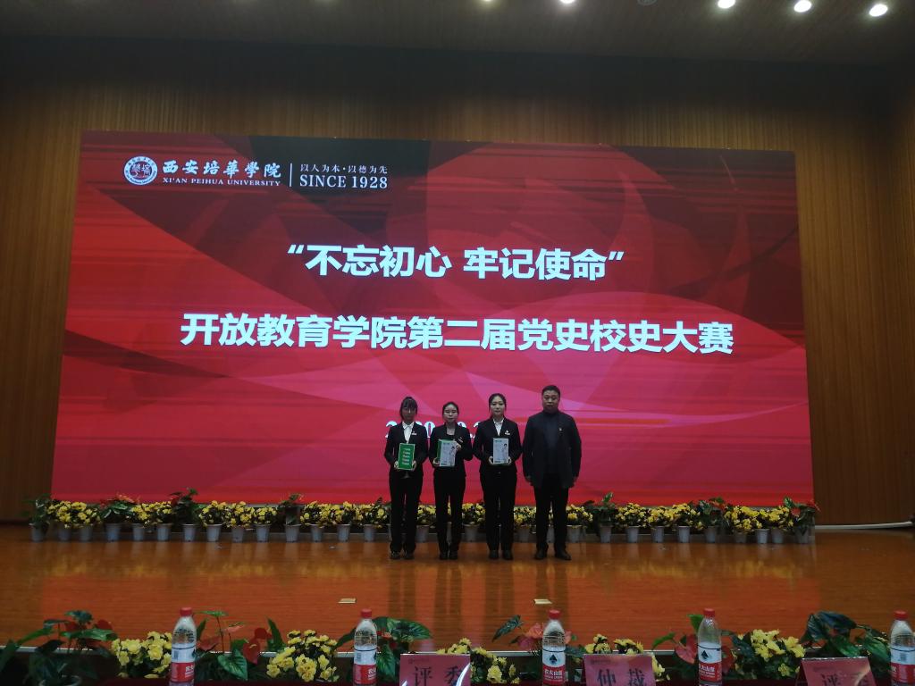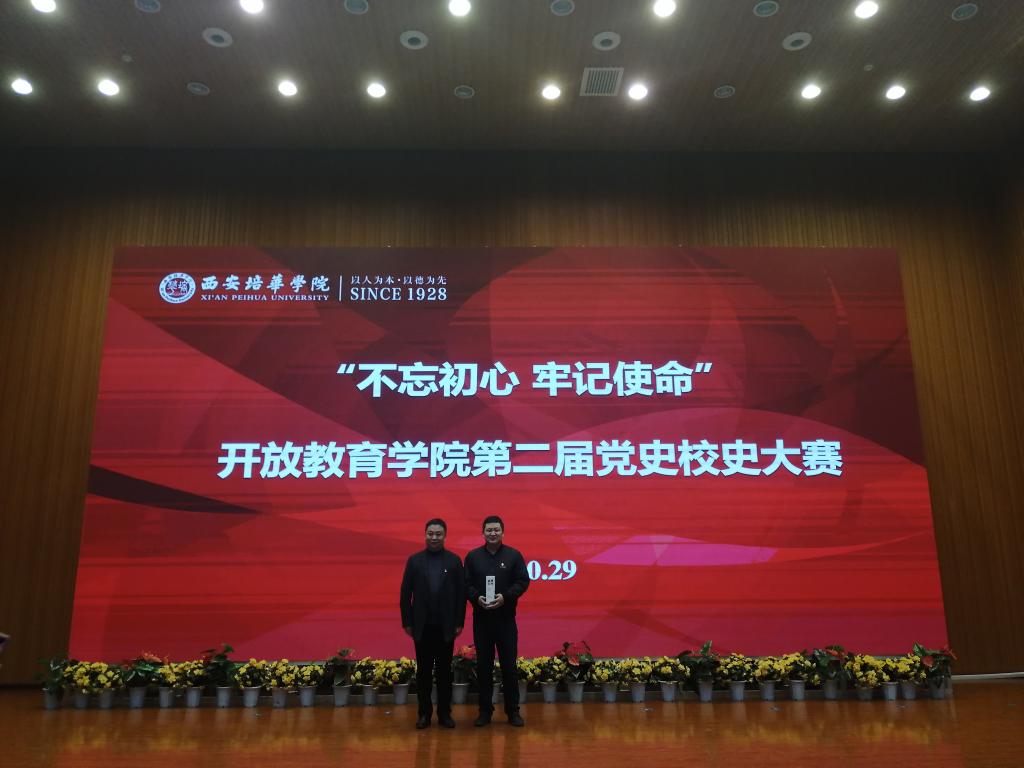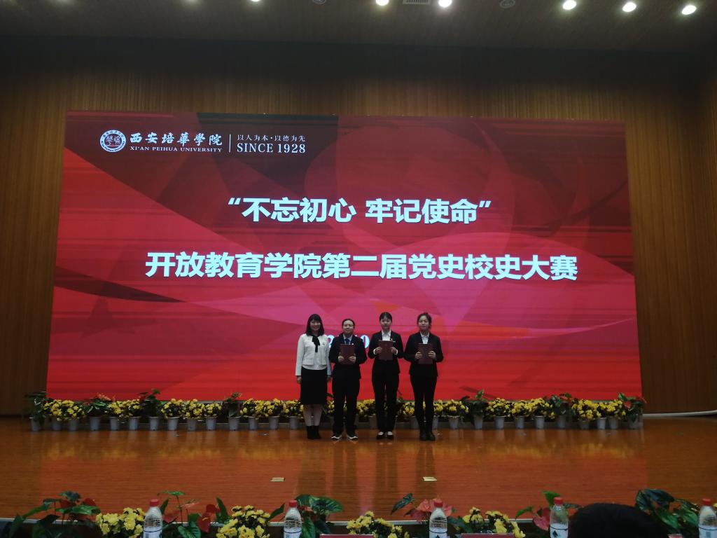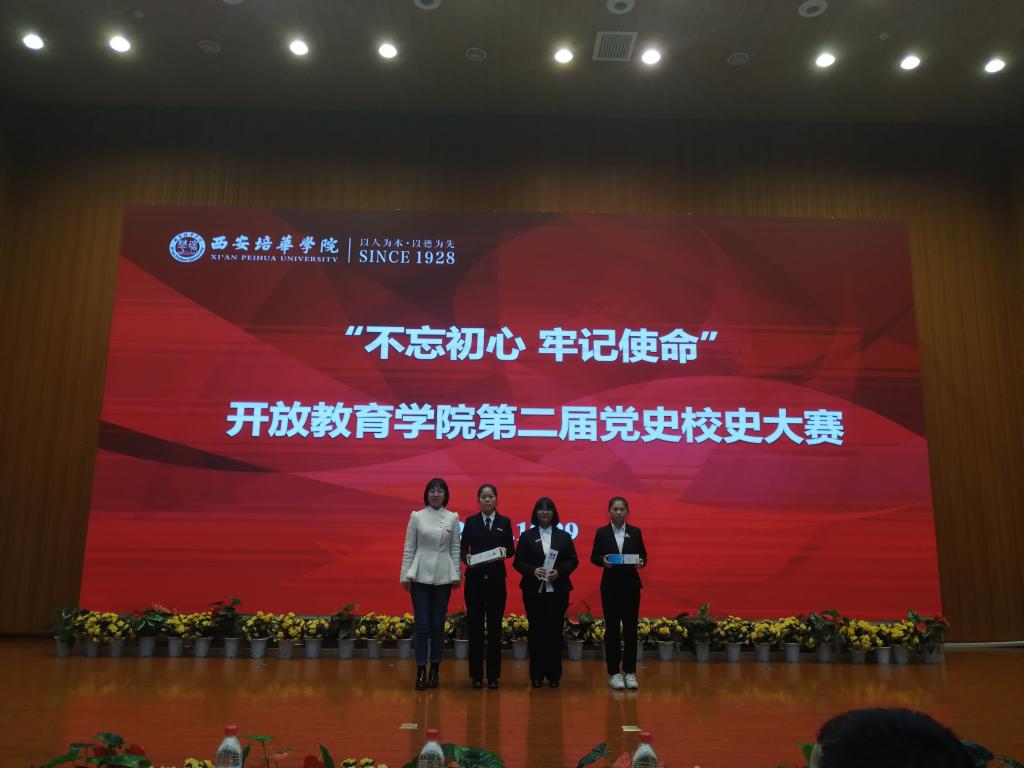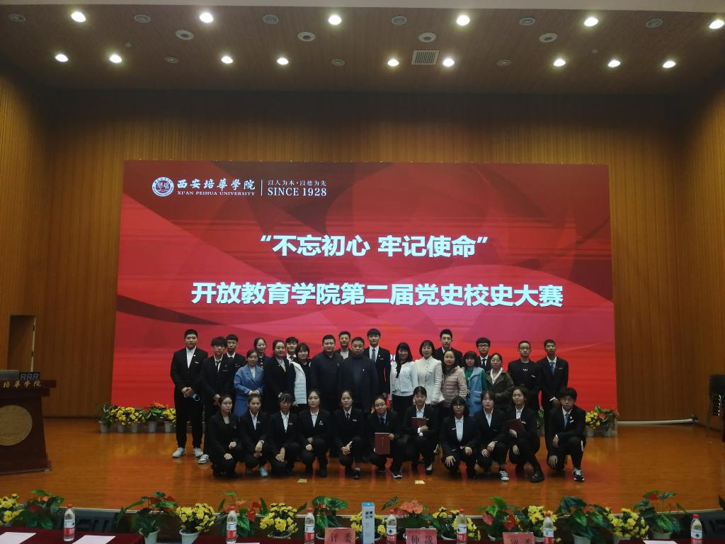 为培养学生爱党爱校情怀,加强学生对于“四史”和校史的学习,我院于10月29日在图书馆报告厅举办开放教育学院第二届“不忘初心 牢记使命”党史校史大赛,党总支书记兼行政副院长罗永辉、党务干事杜苗果担任评委,职工支部书记郭荣琼担任仲裁,全体老师及学生参加。