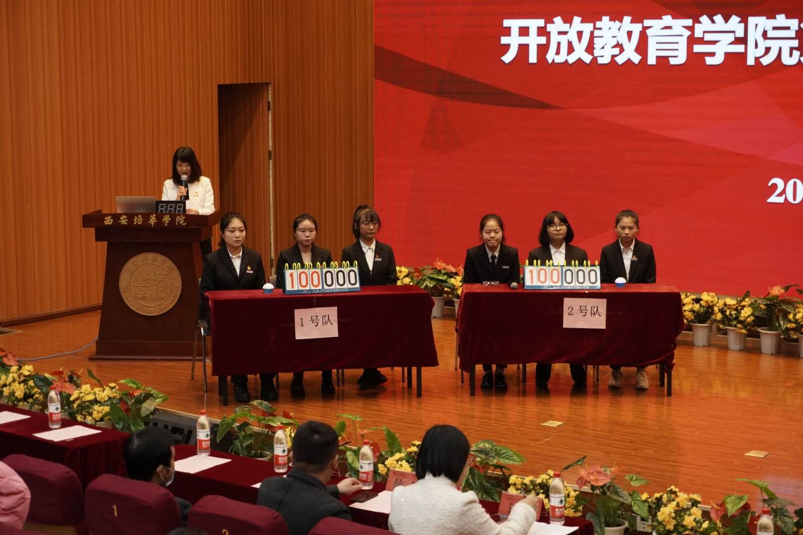 大赛在嘹亮雄壮的培华之歌中拉开帷幕,开放教育学院党务干事杜苗果老师宣布大赛规范和细则,要求同学们认真遵守大赛规则,在比赛中拿出最好的竞技状态,为全院师生献上一场精彩的知识盛宴,也预祝参赛队伍取得优异的成绩。