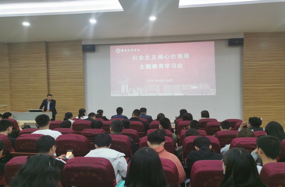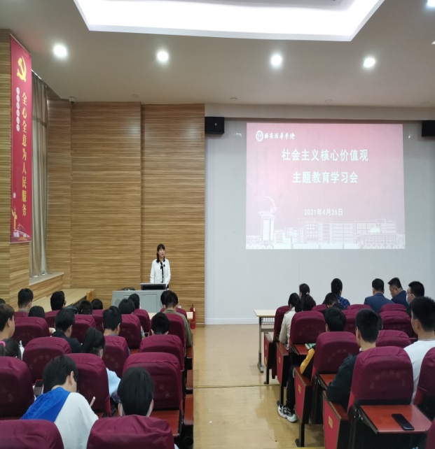 为庆祝中国共产党成立100周年,深入贯彻学习习近平新时代中国特色社会主义思想,引导学生进一步践行社会主义核心价值观,增强学生的责任感和使命感,开放教育学院党总支于2021年4月26日在格物楼J102教室召开了“社会主义核心价值观”主题教育会,院党总支书记罗永辉、党务干事杜苗果及全体党员和学生代表参会,会议由院分团委书记蔡国强老师主持。