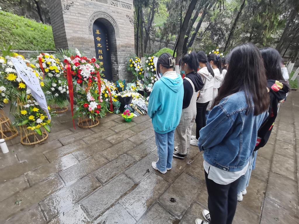 同学们来到刻有革命先烈生平事迹的墓碑旁,认真学习和了解波澜壮阔的革命斗争史与先烈们可歌可泣的斗争事迹,回顾党的百年奋斗历史和光辉岁月,进一步将展党史学习教育贯穿到爱国主义教育中,让全体学生再次接受了一次红色精神洗礼和党性教育。