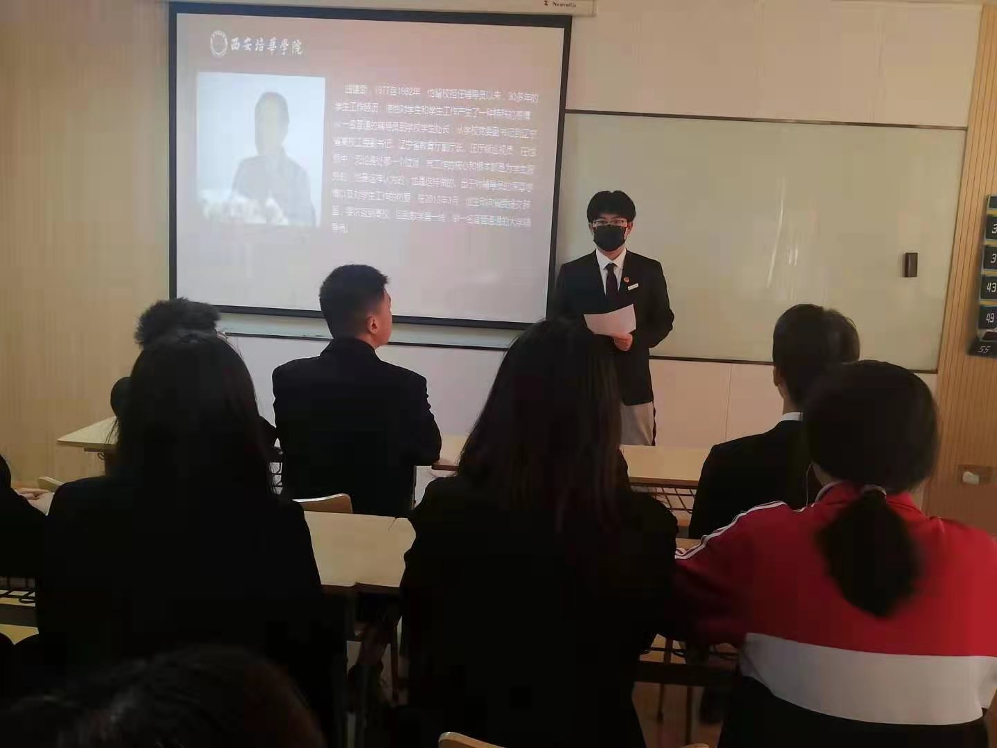 学生代表李乐乐、高涔溢和何泽晨等同学也给大家分享了一些优秀共产党员的先进事迹,在分享的故事中,同学们再一次回顾了党的光辉历史,感悟到革命先辈们抛头颅洒热血换来了现在幸福的生活,纷纷表示今后一定会刻苦学习,用自己的实际行动服务同学,奉献社会,不忘初心,砥砺前行,努力成为社会主义的合格保卫者和可靠接班人。