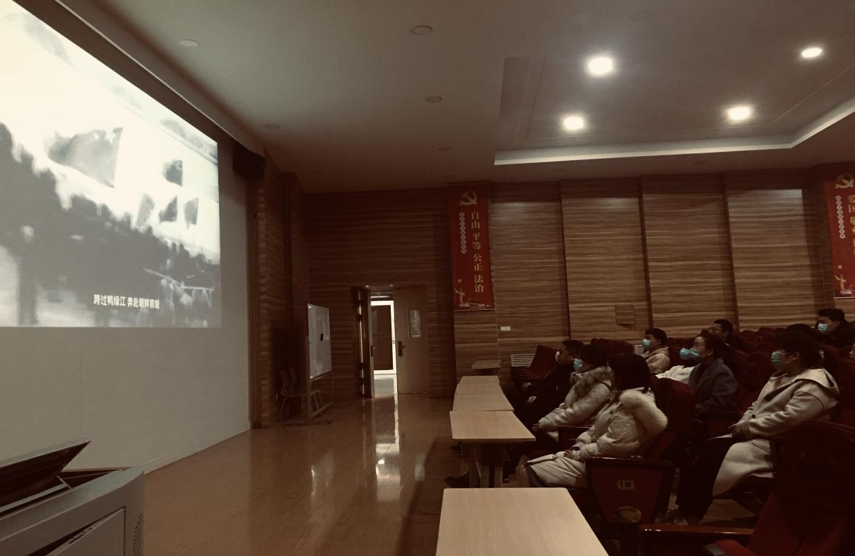 2021年11月25日中午12点,开放教育学院全体党员在格物楼J-101观看红色爱国主义教育影片《长津湖》。