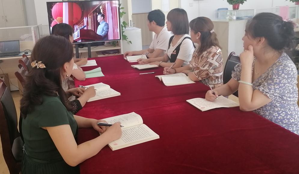 7月1日上午8:00,开放教育学院全体教职工党员在1111-C办公室共同观看庆祝中国共产党成立100周年大会直播,共同学习习近平总书记在庆祝中国共产党成立100周年大会上的讲话。