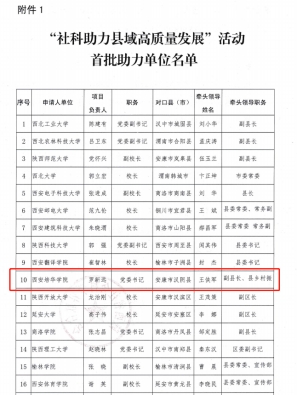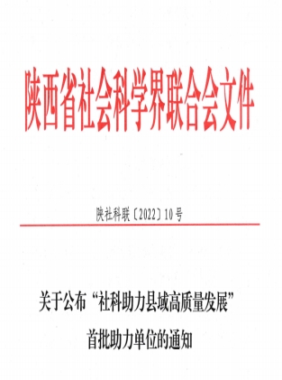 2022年3月3日,陕西省社会科学界联合会发布了《关于公布“社科助力县域高质量发展”首批助力单位的通知》。我校罗新远教授主持申报的项目喜获立项!我校获批成为“社科助力县域高质量发展”首批助力单位,并获省社科联资助经费总额10万元。