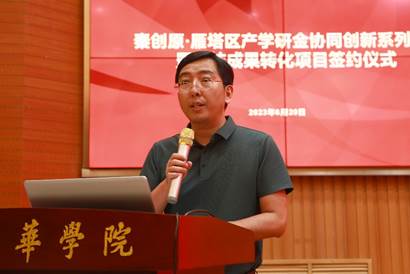 秦海锋助理首先对与会政企各方代表表示热烈欢迎,并介绍了学校的基本情况和科技成果转化工作进展情况。随后雁塔区科技和工业信息化局白惠元副局长以及陕西省技术经理人协会王凯秘书长分别介绍雁塔区科技创新和陕西省技术转移相关工作情况。接着中国银行小寨支行参会代表介绍《聚焦普惠金融,助力企业发展》金融科技政策,我校合作与发展办公室吴军政老师介绍学校科技成果转化三项改革工作相关情况。