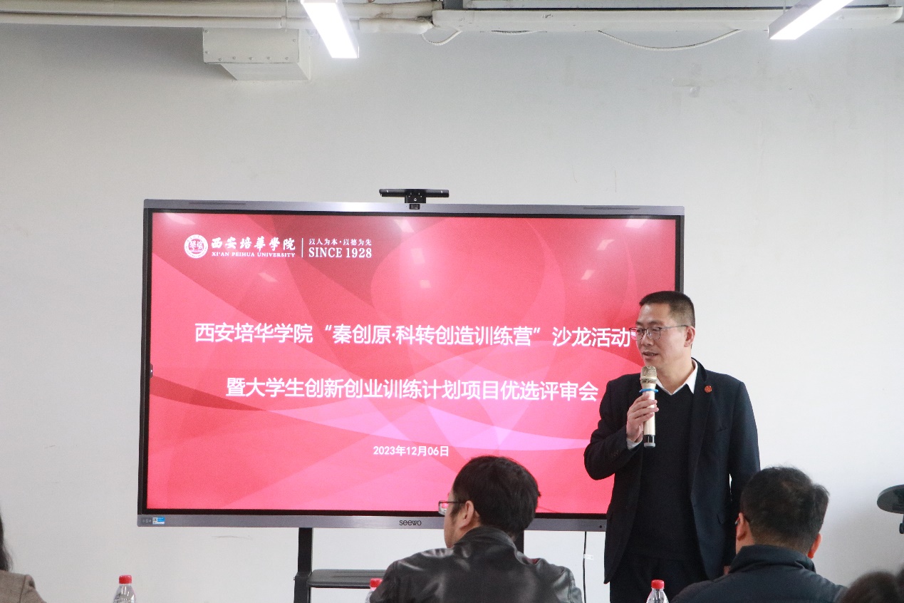 2023年12月6日下午,我校科研管理中心、教务管理中心、合作与发展办公室共同举办的“秦创原·科转创造训练营”第一期沙龙活动暨大学生创新创业训练计划项目优选评审会在创客中心二层207多功能厅召开,活动由我校创客中心负责人王旭东主持。