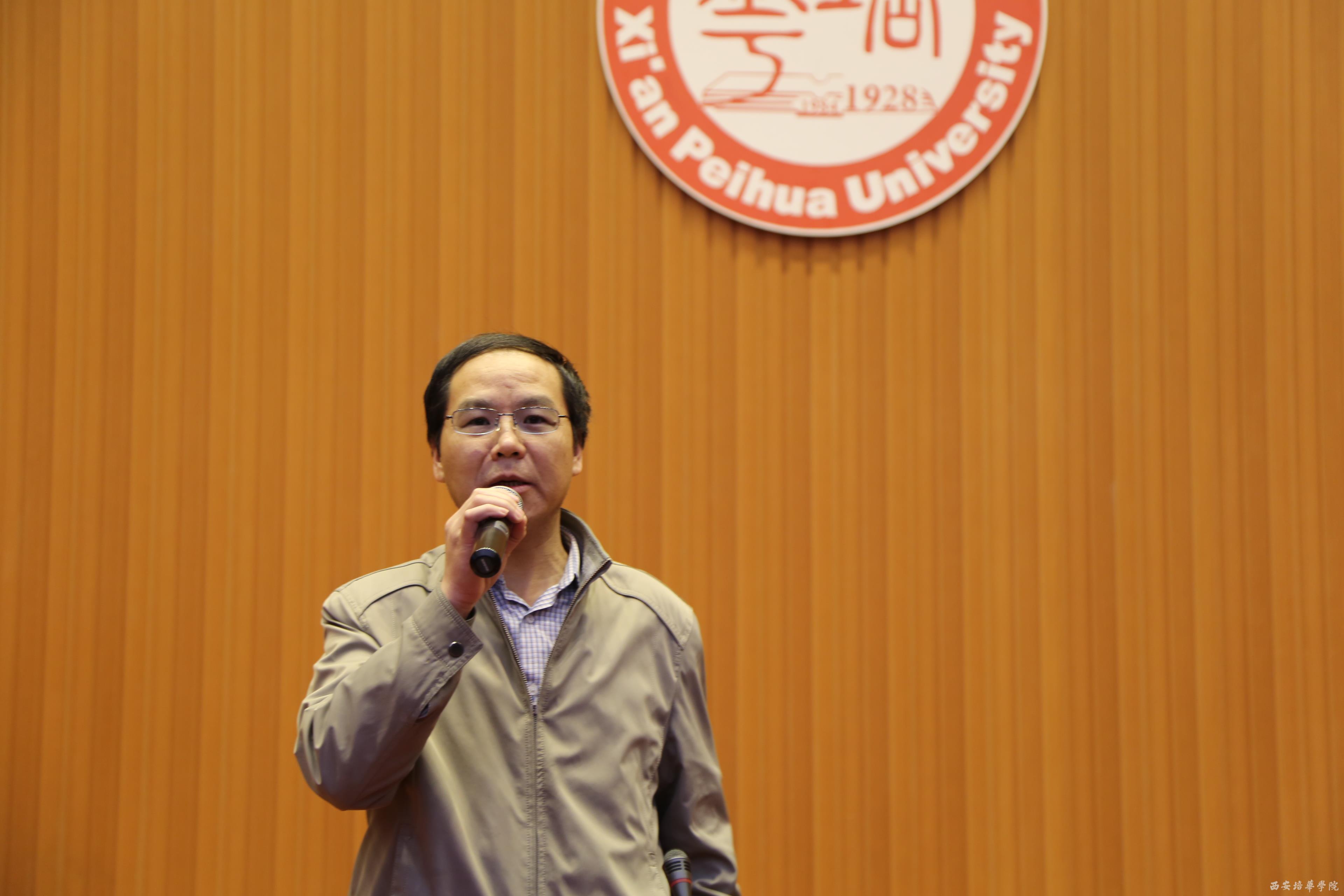 西安培华学院科研处处长王西安教授主持报告会,他讲到,“长安讲坛”是陕西省社科联的品牌宣传栏目,是社科界久负盛名的舆论平台。2015年是“长安讲坛”创办十周年,选择在我校举行首场报告会,寄托着省社科联对我校社科研究事业繁荣发展的热切期望。希望全体师生认真聆听讲座,给自己的心灵一次提升和净化的机会。