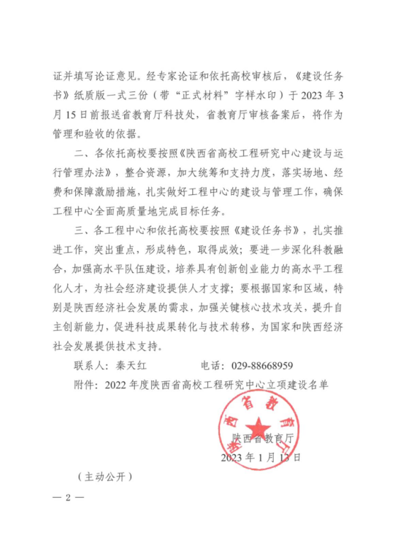 秦创原创新驱动平台建设工作启动以来,学校成立了深度融入秦创原建设工作专班,大力推动校企协同、“两链”融合,签订产学研合作项目共计320项;获批陕西省第五批“揭榜挂帅”项目1项,受资助共500万元;并顺利通过省教育厅科技成果转移转化绩效评估,获评合格。