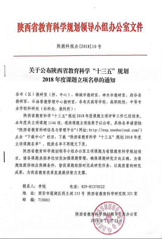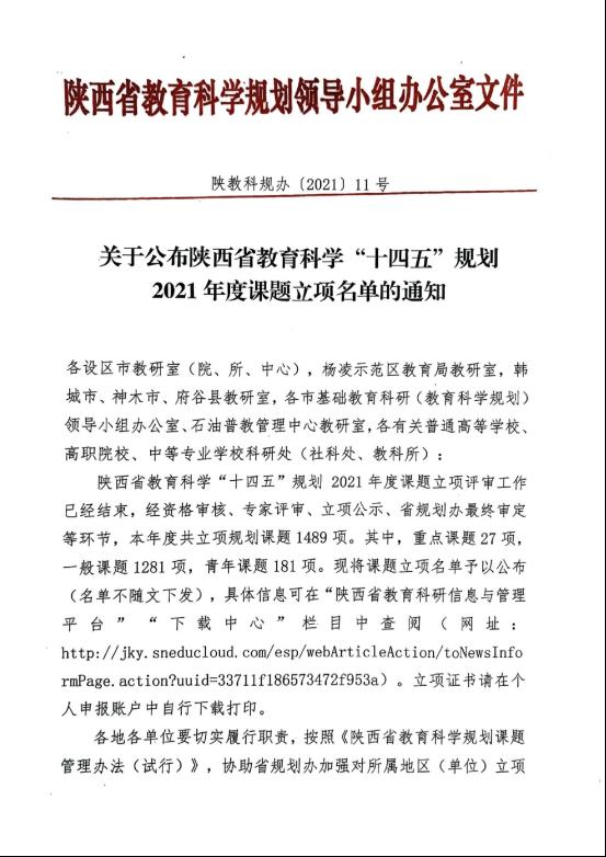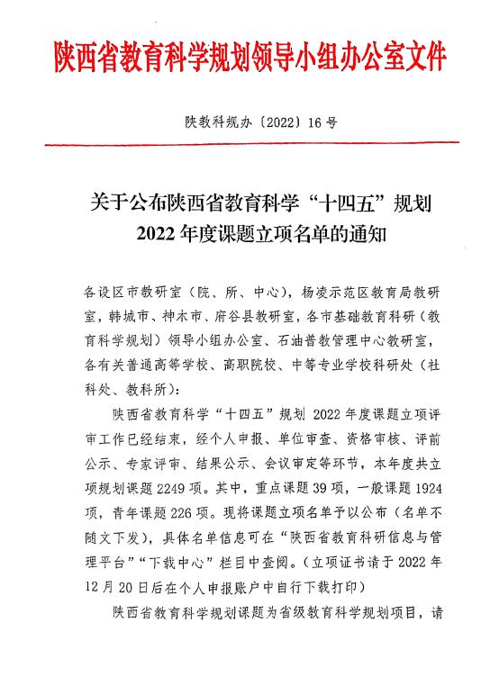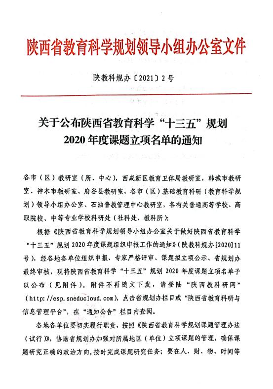 学校高度重视教育科学研究对教育教学改革发展的支撑、驱动和引领作用,广泛动员组织、申报立项教育科学规划课题,引导广大教师更为深入地探索教育教学本质和规律,破解教育教学发展时代难题,引领教育教学改革创新活动。2018年—2022年获批陕西省教育科学规划课题168项。通过教育科学研究促进了科教互动融合常态化,进而有力推动了产学研协同育人新格局的形成。