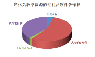 教师在服务企业的同时,将科学技术服务成果转化为教育教学资源,近三年来我校授权发明专利382项,软件著作权133项。其中与教育教学相关并转化为教学资源的专利及软件著作权185项(发明专利8项、实用新型专利103项、外观设计专利3项、软件著作权71项)。