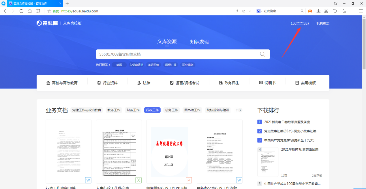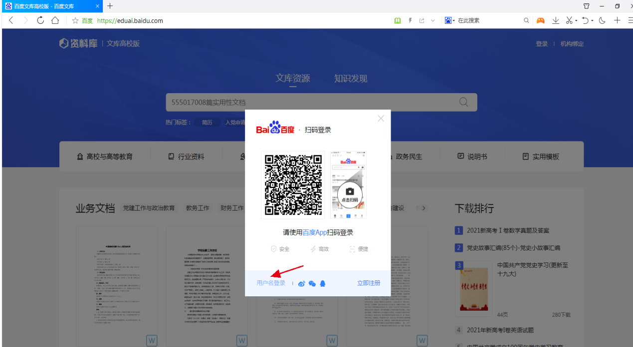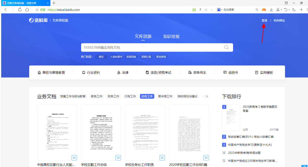 1、 在校内打开“百度文库高校版”主页https://eduai.baidu.com/,点右上角“登录”