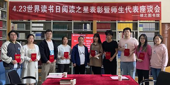 座谈会上,图书馆办公室主任通报了2021年馆藏纸质图书的借阅情况和本次4.23世界读书日的活动安排,并宣读表彰名单。获得2021年度的阅读之星的读者们,热爱读书,喜欢阅读、深度阅读,学思结合,他们积极利用图书馆丰富的馆藏资源提升自我、辐射他人,为校园良好的阅读文化氛围助力、增光,为推动阅读文化、构建书香校园起到了良好的导向和示范作用。