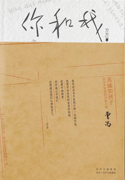 内容简介: 今年是中国现代戏剧泰斗曹禺先生诞辰110周年纪念,他的女儿万方出版了一本《你和我》,首次讲述了父亲和母亲的恋情故事。曹禺24岁即发表处女作《雷雨》,30岁左右,完成了一生最重要的几部作品:《日出》《原野》《北京人》……被称为“中国的莎士比亚”。作家创作力的奔涌喷发,也和他的感情经历有关。曹禺有过三次婚姻,万方是曹禺和第二任妻子方瑞的女儿,很长时间以来,她一直觉得父母情感是隐私,尽管多次被询问,她从未谈起。直到她下决心,用最真实真诚的态度来写这本书。《你和我》第一次收录了曹禺和方瑞之间的情书,以及曹禺给女儿的信。一条去北京专访了万方女士,“我足足花了10年时间,才有了面对真相的勇气,写完这本书,挖出了深埋心底的隐痛,我发觉自己变得比以前强大了。” |