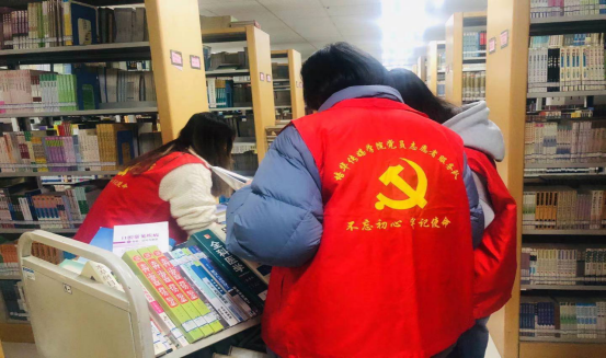 3月5日上午,我校传媒学院团支部的志愿者们来到图书馆开展学雷锋志愿活动——义务整理图书。