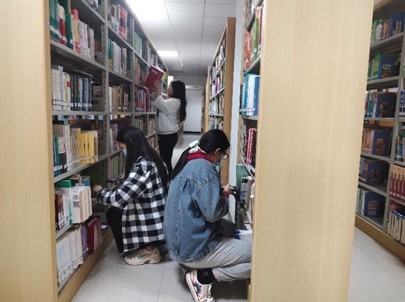 除此之外还有图书倒架、调库、排序、整架等,还包括我们没有接触到的工作,例如贴词条、加盖馆藏章、打号、贴条形码、贴书标等等。上周老师专门给我们进行前台工作的培训,协助值班老师做工作,包括归还借阅图书问题,个人修改密码、查找图书等。疫情防控期间,还要时不时的提醒同学们戴口罩,保持距离隔位就坐,座位清理这些都需要我们去参与,给同学们营造良好的学习环境,促成同学们养成良好的学习习惯。