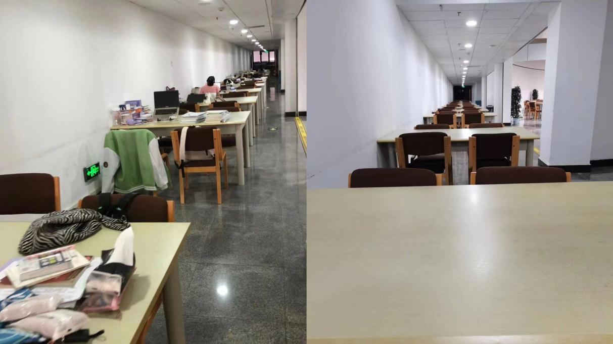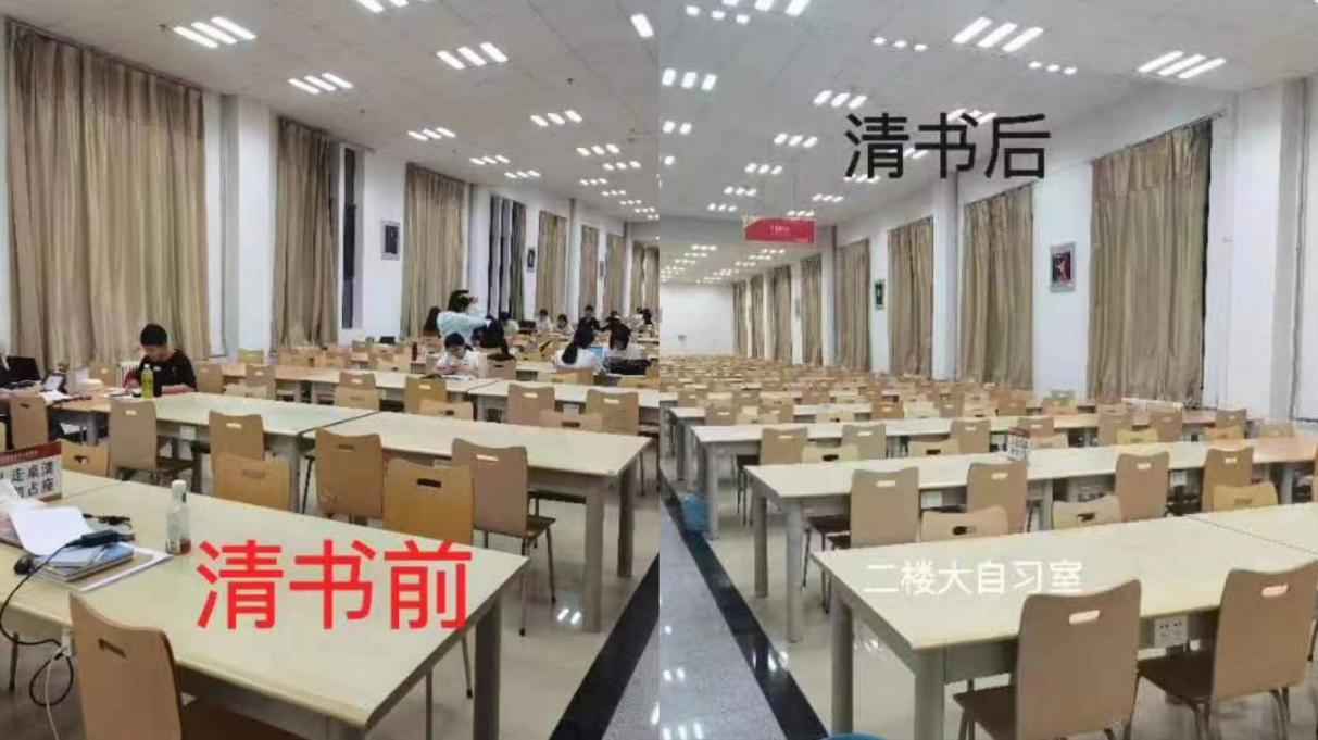 3.即日起将于每天晚上10:00对以物占座现象进行及时清理集中存放,次日早上8:00对公共自习区域进行常态化清理。