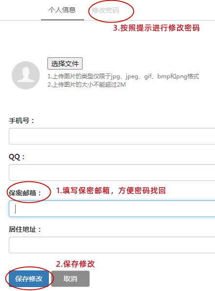 *对于修改后忘记密码的用户,可从邮箱找回!