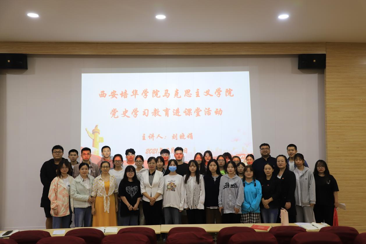 2021年9月17日下午,马克思主义学院党支部邀请西安烈士陵园烈士褒扬科科长刘晓娟老师做党史学习教育进课堂活动宣讲,200多名师生共同参与,题目为《烈士褒扬视角中的党史》。