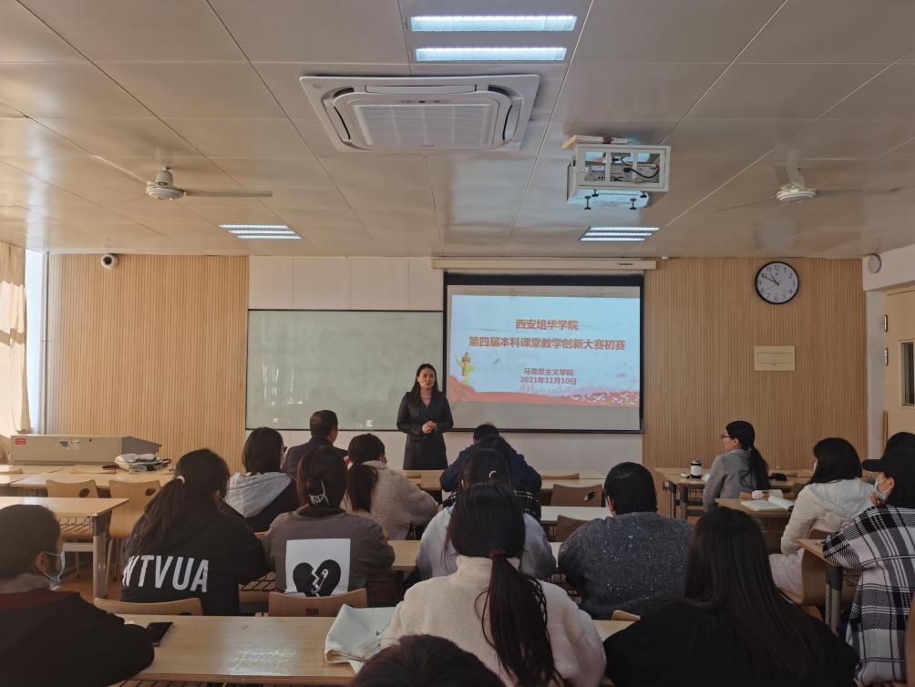 为认真贯彻落实《西安培华学院关于开展第四届本科课堂教学创新大赛的通知》[培华教发函(2021)33号]精神,马克思主义学院于11月10日下午在博远楼2419教室举行了第四届本科课堂教学创新选拔大赛初赛,思想道德与法治教研室副教授张明霞老师与马克思主义基本原理教研室讲师李会敏老师比赛成绩优异,被学院推荐参加学校比赛。