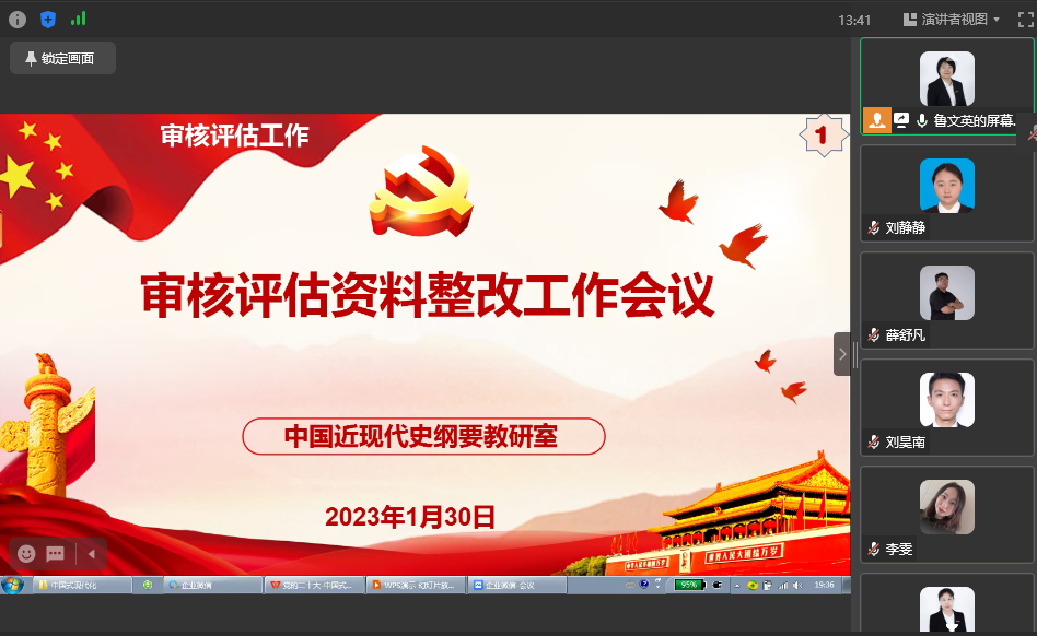 为扎实做好本年度本科教育教学审核评估工作,马院全面进入了审核评估工作最后冲刺阶段,在院审核评估领导小组办公室的统一协调指挥下,1月30日马克思主义学院霍艾湘副院长组织教研室主任在博远楼2301-B召开审核评估资料整改工作部署会议。