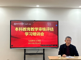 为进一步加深教职工对本科教育教学审核评估工作的认识,在评估冲刺阶段更好的开展审核迎评工作,促进学院内涵建设,2月23-24日,马克思主义学院在博远楼2501-B会议室组织开展本科教育教学审核评估专题培训会。