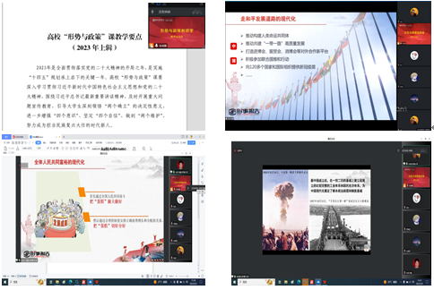 形势与政策教研室全体教师认真研读教育部下发《高校“形势与政策”课教学要点(2023年上辑)》文件,深刻领会贯彻文件精神。从2月初开始,每周固定时间集体备课学习、讨论,通过青年教师试讲、老教师点评,给新进的教师及时解惑,老师们互相学习,取得了很好的成效。