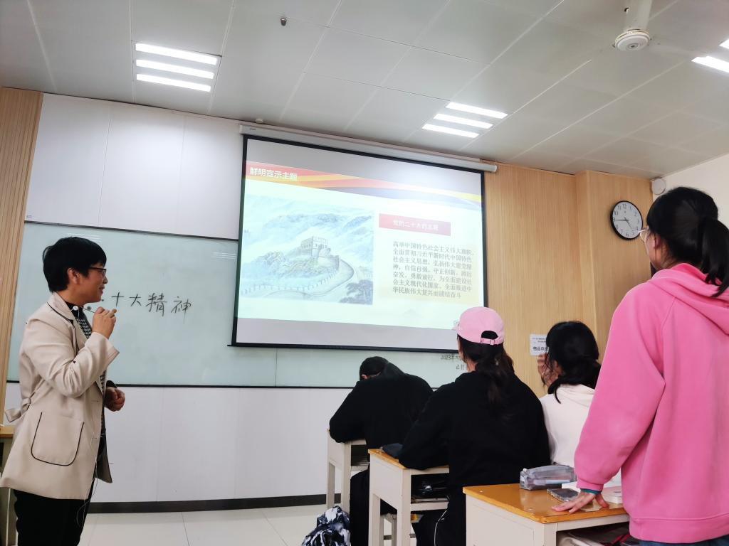 3月6日学校正式开课以来,每位教师在第一堂课上,重点宣讲党的二十大精神:让学生们明白新时代10年发生历史性变革的根本原因是什么;让学生们深刻领悟“两个确立”对新时代党和国家事业发展、对推进中华民族伟大复兴历史进程具有的决定性意义;引导学生深刻认识推进中国式现代化是一项前无古人的开创性事业;帮助学生们认清时代责任和历史使命,牢固树立成为新时代好青年的自觉自信。
