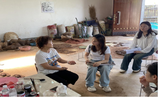 团队学生同非遗泥塑传承人胡小红老师进行交流学习