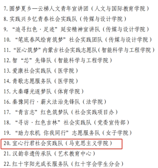 马克思主义学院“宜心行君”社会实践队荣获大学生暑期“三下乡”活动社会实践优秀团队荣誉称号