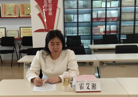 在交流研讨环节。教工第二党支部书记张明霞老师结合自身工作实际,积极发言,分享学习心得。
