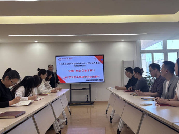 为进一步深化思政课程教学改革创新,提高思政课教学质量,4月10日,《毛泽东思想和中国特色社会主义理论体系概论》(以下简称“概论”课)教研室开展了“课程+专业”的教学法活动。本次活动聚焦OBE理念如何在“概论”课中有效运用。全体代课教师参与此次研讨。