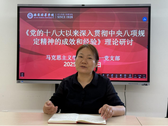 鲁文英书记强调,中央八项规定是中国共产党推进全面从严治党的标志性要求与切入口,其成效之显著、影响之深远有目共睹。全体党员必须时刻保持清醒,将规定精神内化于心、外化于行,做到知敬畏、存戒惧、守底线。结合马院教学科研工作的具体特点,会议总结了过去在贯彻八项规定过程中摸索出的宝贵经验:即理论学习常抓不懈、师德师风严管厚爱、监督提醒关口前移,有效促进了院内清正廉洁氛围的营造。