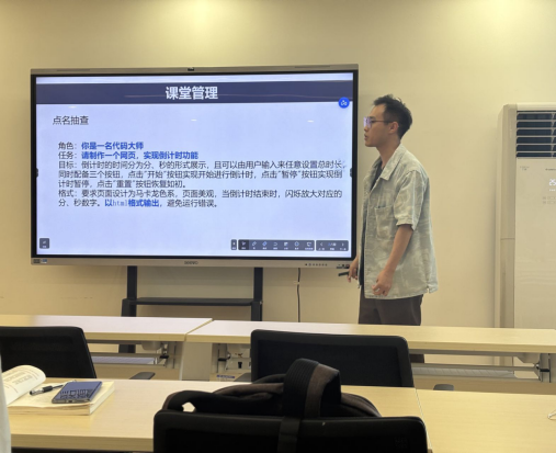 优化教学管理:张老师展示了利用DeepSeek 技术生成学生名单滚动式的课堂点名抽查按钮和倒计时制的抢答程序,使得学生保持“紧张感”和“课堂在场感”,提高学生听课注意力,优化课堂教学管理。