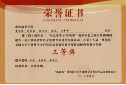任职期间,主持校级课题4项,参与校级课题9项、省级课题2项。荣获第六届陕西高校青年教师教学竞赛三等奖;西安培华学院第十三届青年教师教学竞赛一等奖;第十八届“挑战杯”全国大学生课外学术科技作品竞赛红色专项活动陕西省赛二等奖、三等奖;“建行杯”第八届中国国际“互联网+”大学生创新创业大赛陕西赛区(“青年红色筑梦之旅”赛道)铜奖;大学生新文科实践大赛中获国赛铜奖一项、优秀奖一项。