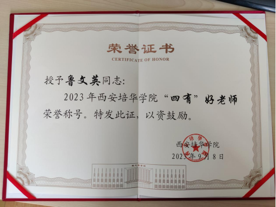 西安培华学院“四有”好老师证书