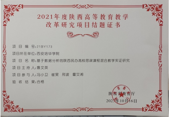 2021年省级教改结项证书