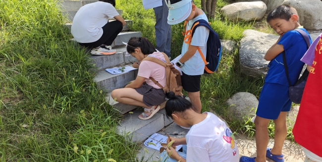 在绿意盎然的维之园,孩子们以小组为单位,用采集的绿叶拼出一颗颗“和平之心”,表达对和平的珍视与守护。