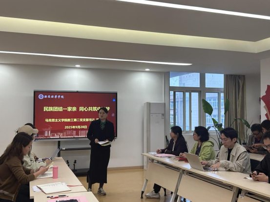 9月28日,马克思主义学院教工第二党支部组织关于铸牢中华民族共同体意识主题党日活动,党支部书记张明霞讲了题为《民族团结一家亲同心共筑中国梦》的党课。