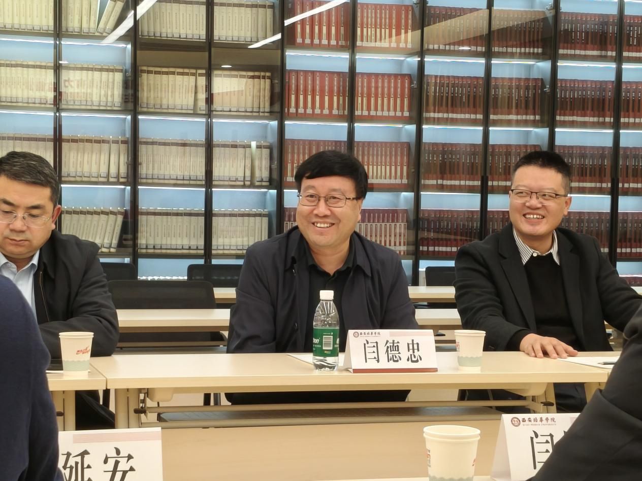 马克思主义学院院长闫团结就我院的建设情况做了总体的汇报和介绍,西北农林科技大学马克思主义学院党委书记闫德忠对我院的思政课教师队伍建设、管理方法优化及竞赛成绩提升等方面工作成效给予高度肯定。我院副院长寇军强就学院党建工作做了专项汇报,就省级重点马院培育单位建设、样板支部建设、党员管理等情况做了介绍。西北农林科技大学马克思主义学院院长杨鹏教授介绍了他们在思政课建设领域的实践与探索。我院副院长赵延安则介绍了我校的发展优势和悠久的办学历史。副院长霍艾湘介绍了学院应用型案例教学与“思政+专业”融合教学模式。