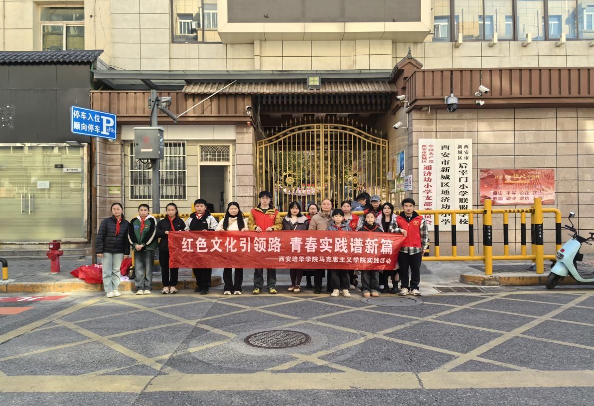为进一步提升学生的社会实践能力,促进思政课理论与实践相结合,增强思政课的丰富性和感染力,习近平新时代中国特色社会主义思想教研室教师金青山、魏战刚、张晓朦、苏煜彤、毕静烨子,于2025年11月20日带领法学2408和2409班的5名学生走进西安市新城区通济坊小学举办了“公益彩绘”社会实践活动。大学生与小学生们携手合作,将校园中原本平平无奇的井盖变成了充满童趣与艺术气息的“地面画廊”,不仅美化了校园环境,更在孩子们心中播下了美的种子。