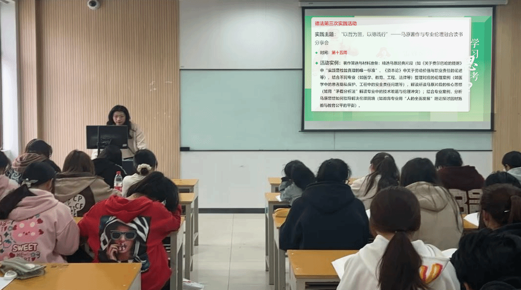 据教研室主任沈永真介绍,本次活动是课程教学改革的一次有益尝试,后续将持续完善“课堂+读书”的教学模式,定期开展经典研读、专题研讨等活动,让马克思主义经典著作成为滋养学生成长的精神养分,助力大一新生树立正确的世界观、人生观、价值观,成长为堪当民族复兴大任的时代新人。