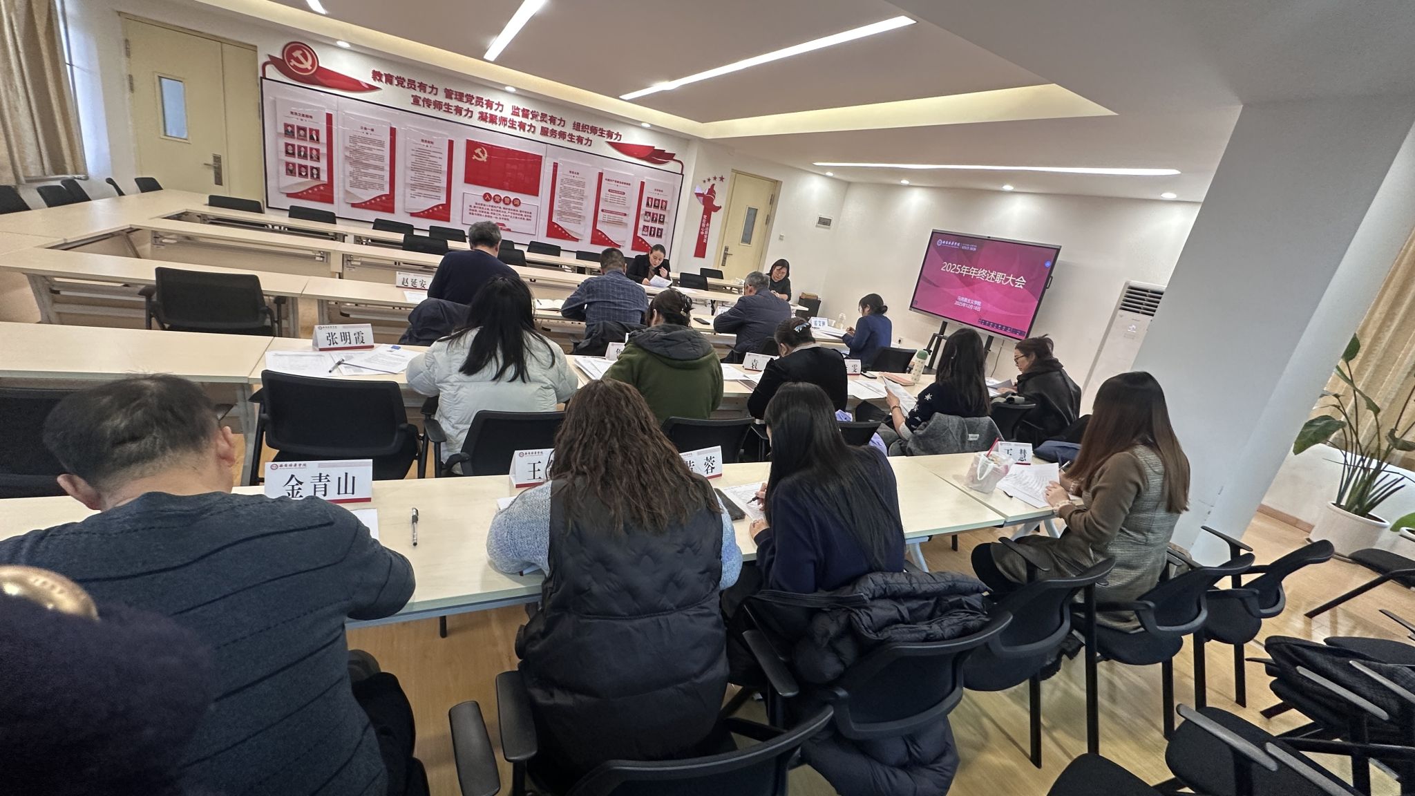 12月18日,西安培华学院马克思主义学院2025年度教职工年终述职大会在2501B教室顺利举行。学院全体教职工依照既定安排有序进行述职,全面总结过去一年的工作。