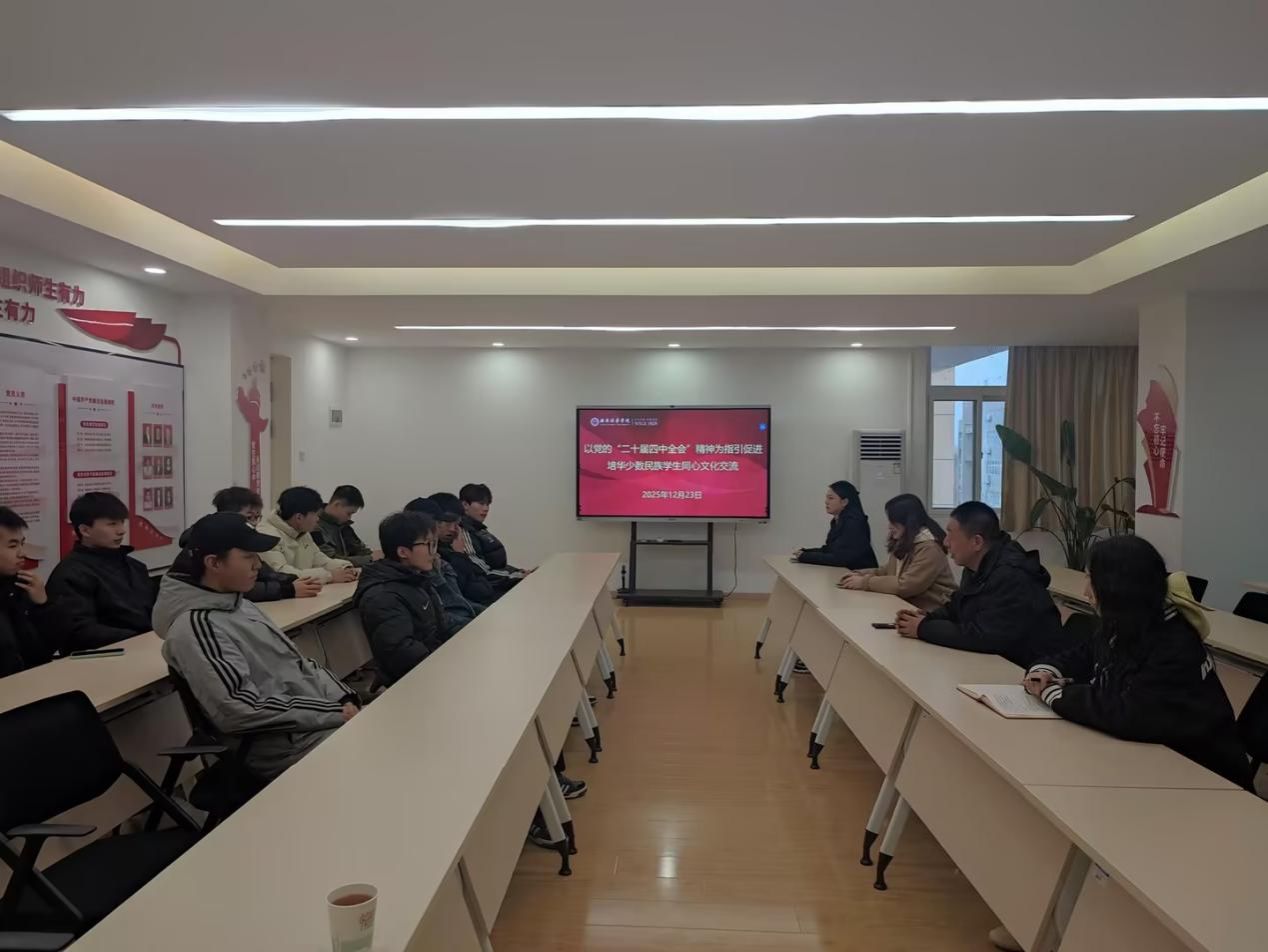 2025年12月12日,马克思主义学院教工第二党支部以党的二十届四中全会精神为指引,围绕铸牢中华民族共同体意识这一主线,开展了促进少数民族学生同心文化交流的特色座谈活动。