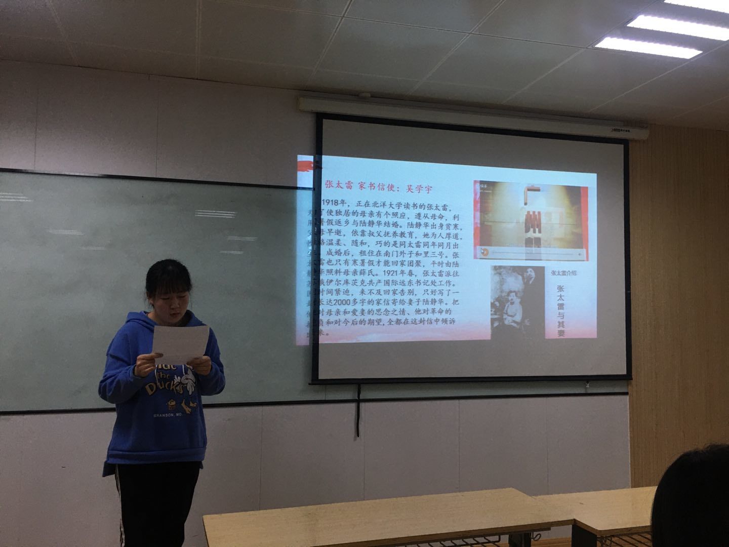 学生诵读张太雷写给妻子的家书