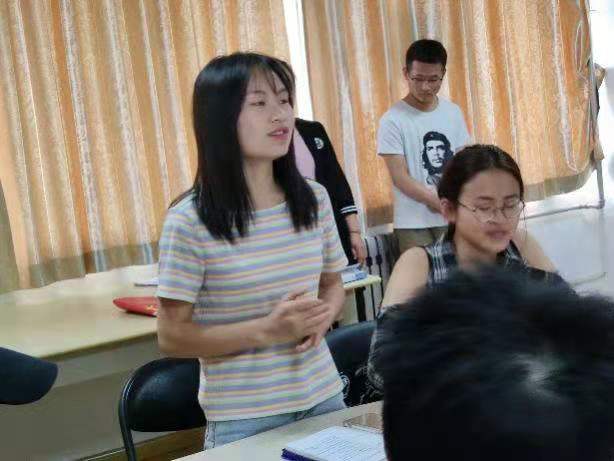 接着,老师们分别介绍了他们在教学中创新之处。冯小卫老师就自己的教学总结了四点,一是线上线下相结合,课上课下相结合。二是坚持贯彻“一中心、两融合、三评价”教改思路。三是发挥三个方面的作用,“三”就是三个三位一体,即老师的主导作用,学生的主体作用,辅导员的辅助作用相结合。另一个就是课前、课中和课后三者的结合。第三就是过程性考核和期末考核、成果考核相结合。四是实施四个主要活动,一是开展“青春向党,奋斗有我”活动,二是清明节“云缅怀先烈”活动,三是“我心向党话百年”活动,四是大学生在线,四史知识竞答活动。朱娟丽老师从三个方面介绍了她在课堂上开展“四史故事分享”活动的情况。一是开展的目的:配合线上四史知识竞答活动和传承红色基因、缅怀革命先烈、弘扬时代精神、讲好中国故事,使学生在分享与倾听中感受伟大精神的引领,建立对中国革命历史和政治制度的认同。二是实施的过程:首先让学生按学号轮流讲四史故事,其他学生谈感悟,接着将学生提交的故事资料进行整理和编排,最后由宣传委员推送到班级公众号。三是活动的效果:此活动无论是在对学生心灵的震撼、思想的启迪、行动的引领、语言组织表达能力、自信心的培养等方面都有很大的帮助。