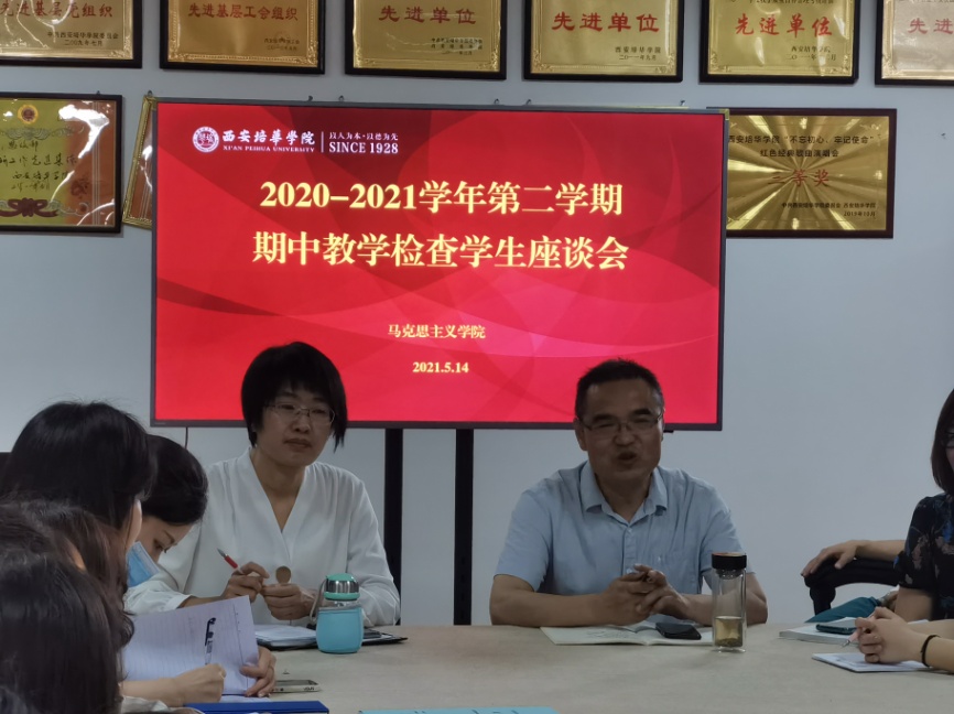 2021年5月14日14:00—17:00在2501A会议室召开期中教学检查教师座谈会和学生座谈会,马克思主义学院全体教师、督导专家杨权利老师、30名各专业学生代表参加此次会议。