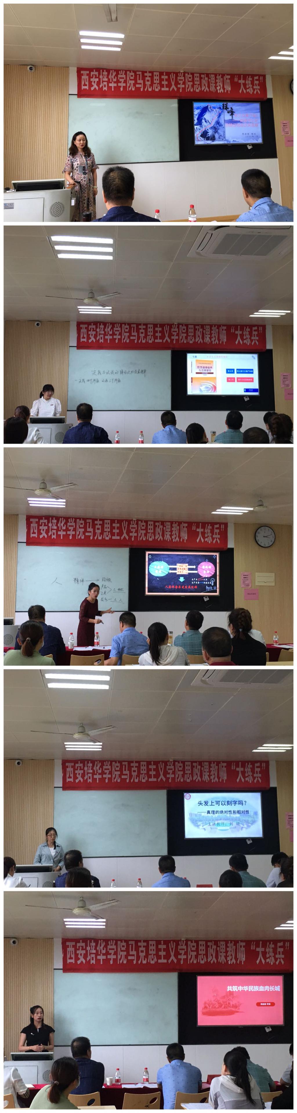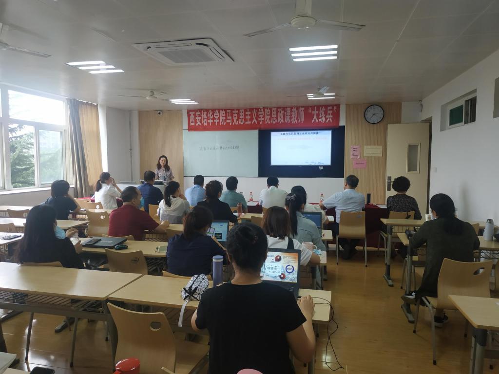 为了深入学习贯彻习近平总书记关于教育的重要论述特别是在学校思想政治理论课教师座谈会上的重要讲话精神,认真落实中办国办《关于深化新时代学校思想政治理论课改革创新的若干意见》,根据《中共陕西省委教育工委 陕西省教育厅关于进一步深化陕西学校思政课教师“大练兵”主题活动的通知》文件要求,加强高素质创新性思政课教师队伍建设,深化思政课质量改革,2020年7月22日,我校马克思主义学院举办2020年思政课教师“大练兵”现场展示活动。
