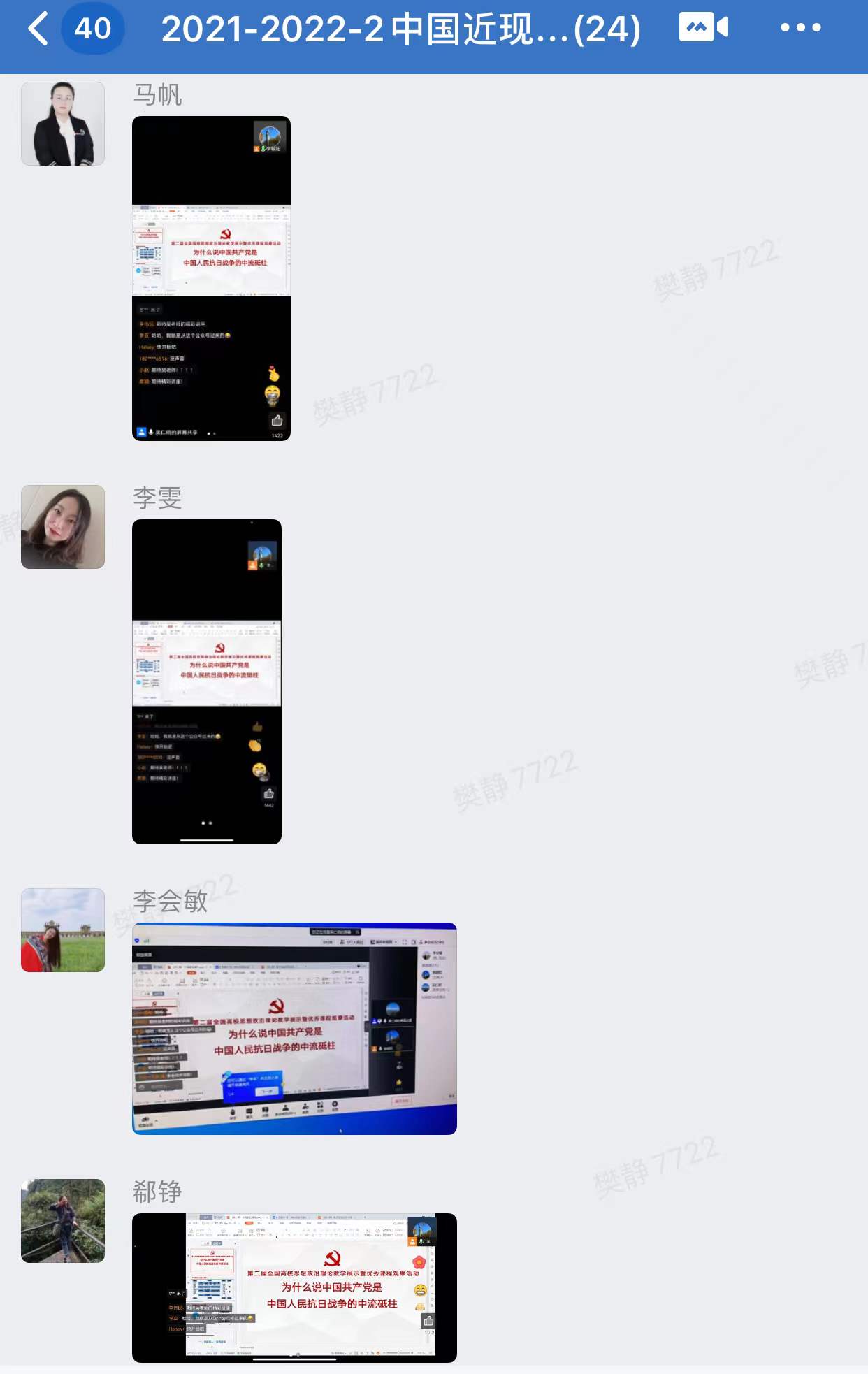 为进一步提升《中国近现代史刚要》课程的教学质量及教学水平,2022年4月15日晚19点西安培华学院马克思主义学院中国近现代史纲要教研室全体教师通过网络平台参加第37期中国近现代史纲要课名师讲堂暨教学观摩课的学习,同时教研室主任樊静老师根据此次线上观摩课的主题《为什么说中国共产党是中国人民抗日战争的中流砥柱》进行了云端集体备课,取得良好效果。