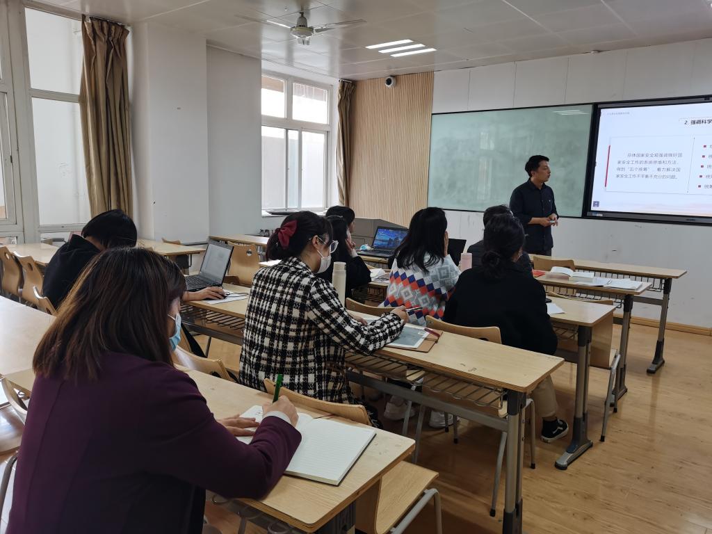 3月20日,马克思主义学院《习近平新时代中国特色社会主义思想概论》教研室组织开展名师示范课观摩活动,在博远楼2302教室,阮博博士对青年教师就“全面贯彻落实总体国家安全观”的内容进行了示范授课。